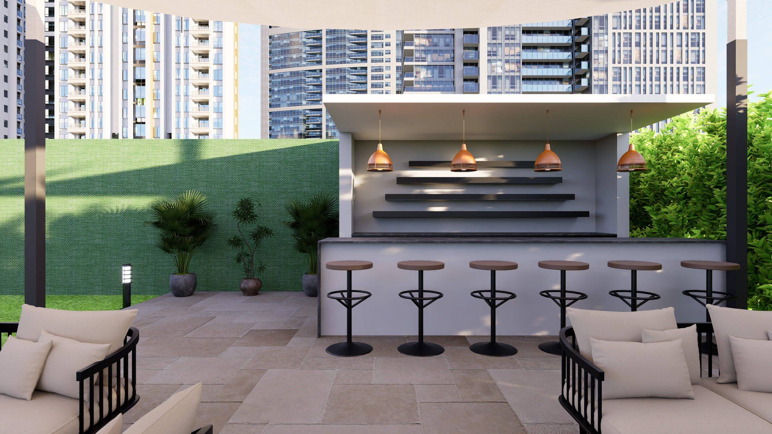 Several key decisions shaped the overall atmosphere of the space. Durable outdoor furniture was selected to ensure comfort while withstanding regular use and exposure to the elements. Integrated landscape elements, including perimeter greenery and potted plants, soften the built environment and help define the boundaries of the lounge. Path lighting and subtle fixtures enhance safety and ambiance during evening use, ensuring the space remains welcoming throughout the day and night.